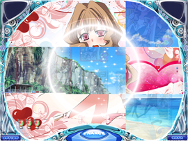 | 回転中にしょうこ・みく・まりかのピースが画面に埋まっていくパズル予告!画面を埋め尽くすとチャンスアップ! Ryotyキャラクターのパズルはかけらが出現しただけで16R大当り確定! |